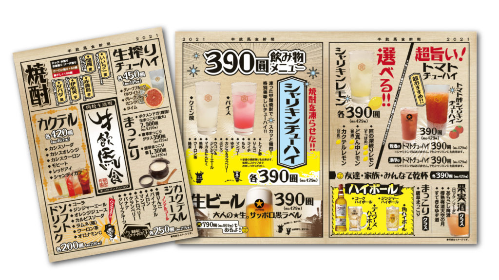 【メニューデザイン】牛飲馬食さまのドリンクメニュー